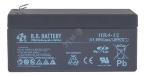 Аккумуляторная батарея B.B. Battery HR 4-12 - это необслуживаемая герметичная батарея, изготовленная по технологии AGM (электролит связан в стекловолоконном сепараторе, не жидкий) емкостью 4 Ач и напряженим 12 Вольт постоянного тока. Герметизация аккумулятора BB Battery HR 4-12 выполнена при помощи клапана избыточного давления. Использование таких аккумуляторов допускается в любом положении, кроме перевернутого.