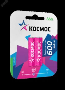 Ni-Mh (никель-металлогидридные) аккумуляторы Космос – заменяют обычные батарейки типоразмера ААА (также называют ''мизиньчиковые'', на приборах-потребителях может обозначаться как LR03, R03, UM4). Аккумулятор имеет емкость 600mAh и может быть заряжен сотни раз, что делает его экономичным выбором по сравнению с обычными батарейками ААА. В упаковке находится два аккумулятора, которые подходят для большинства устройств. Перед использованием аккумуляторы следует зарядить.