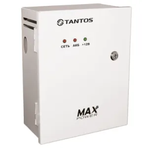 Источник вторичного электропитания резервированный Tantos ББП-50 V.8 PRO с фильтрацией от взаимного влияния потребителей по каждому каналу для обеспечения бесперебойного электропитания потребителей при номинальном напряжении 12 В постоянного тока при токе потребления одного канала не более 0,65 А. Количество каналов - 8.