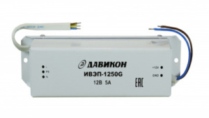 Давикон ИВЭП-1250G - источник вторичного электропитания стабилизированный уличного исполнения. Предназначен для обеспечения электропитания потребителей при номинальном напряжением 12B постоянного тока 5А (максимальный 5,5А). Отличительные особенности Давикон ИВЭП-1250G - Электронная защита от КЗ, от перегрузки по току и перегрева, защита от перенапряжения по входу, низкие пульсации выходного напряжения, защита потребителя от перенапряжения и от импульсов до 4000В, герметичный (всепогодный, залитый компаундом), металлический корпус.