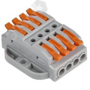 Клемма строительно-монтажная проходная с площадкой серии 222 предназначена для соединения одножильных и многожильных медных проводников без использования инструмента в электрических сетях переменного и постоянного тока. Клемма допускает многократное присоединение и отсоединение проводников. Количество подключаемых проводников - 4/4.