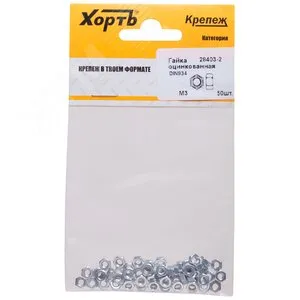 Гайка DIN934 М3 шестигранная оцинкованная (50 шт)