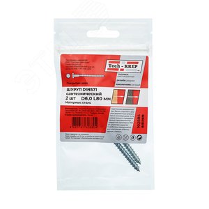 Шуруп DIN571 6х80 сантехнический, шестигранная головка (2шт) - пакет