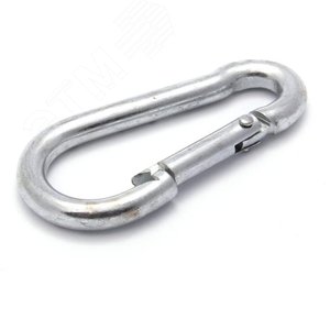 Пожарный карабин изготовлен из прутковой оцинкованной стали и имеет несложную конструкцию. У продолговатого изделия в форме неправильного овала есть подпружиненная защелка, вращающаяся на оси, с замком. Такая быстроразъемная деталь делает возможным ускоренную фиксацию тросов, веревок или цепей, их соединение между собой либо отсоединение.