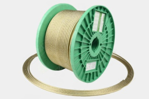 Стальной латунированный трос с покрытием ПВХ. Атмосферные осадки и климатические изменения температуры от - 40 до +50 градусов С фактически не влияют на эластичность, истираемость, прозрачность покрытия и обеспечивают долговременный срок службы, при условии отсутствия механических повреждений покрытия. Пластикат, используемый для покрытия троса, является экологически чистым материалом и абсолютно безопасен для человека и животных.
