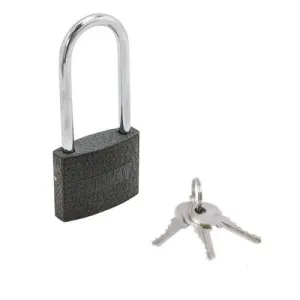 Замок навесной цилиндровый общего применения. Материал корпуса - чугун. Закаленная стальная дужка диаметром 6 мм, проем дужки - 55 мм по высоте и 27 мм по ширине. Габариты корпуса - 46,5х35,5 мм. Комплектуется 3 английскими ключами. Замок имеет функцию автоматического закрывания.