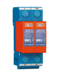 Двухполюсное УЗИП класса I+II комбинированного типа. УЗИП выполнено из одного сменного варисторного модуля, одного модуля с разрядником и базы для подключения к сети и креплению на DIN-рейку 35 мм. УЗИП выдерживает токовые нагрузки, соответствующие УЗИП класса I, а по способности ограничения импульсных напряжений, допустимых для изоляции оборудования, соответствует УЗИП класса II. Устанавливается в пределах 0А(В) – 1 зон молниезащиты (в соответствии с ГОСТ Р МЭК 62305-1 и СО-153-34.21