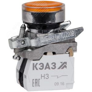 Кнопка КМЕ4611мЛС-24В-желтый-1но+1нз-цилиндр-индикатор-IP65-