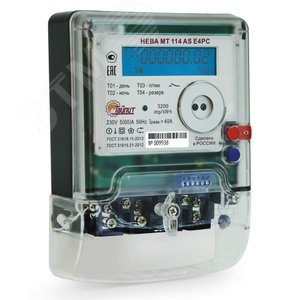 Счётчик электроэнергии однофазный НЕВА МТ 114 AS E4PC 5(60)A Ур регион