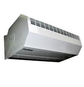 Рубеж' - завеса, предназначенная для защиты проемов высотой до 5 метров в помещениях различного назначения. Завеса состоит из центробежных вентиляторов, медно-алюминиевого оребренного водяного теплообменника, защищенного от загрязнения воздушным фильтром, элементов автоматики и воздуховыпускной решетки, установленных в металлическом корпусе с полимерным покрытием. Завесы оснащаются воздуховыпускной решеткой с возможностью регулирования воздушного потока в пределах ±15 градусов, специальными кронштейнами на боковых стенках для крепления завесы к стене или потолку с возможностью дополнительного регулирования угла наклона завесы, термостатом капиллярным для защиты от перегрева.