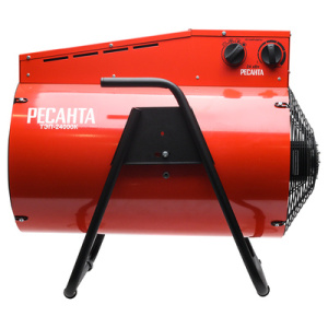 Тепловая электрическая пушка РЕСАНТА ТЭП-24000К предназначена для вентиляции и обогрева жилых и производственных помещений, складов, гаражей, а также для обогрева и сушки в строительстве. Прибор относится к тепловым пушкам круглого типа. Нагревательный элемент - трубчатый. Данная модель рассчитана на питание от электросети переменного тока частотой 50 Гц, номинальным напряжением 380В (трехфазная). Устанавливается на полу. Обогреватель оснащен регулировкой режимов работы (мощности) - Режим 1 - 145 Вт (в этом режиме работает только вентилятор, функция обогрева отключена). Режим 2 - 12000 Вт. Режим 3 - 24000 Вт.
