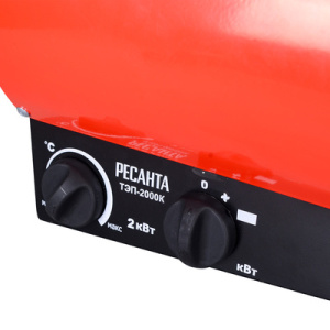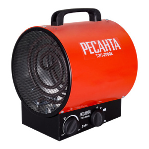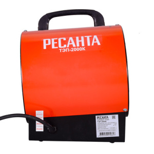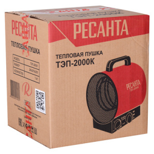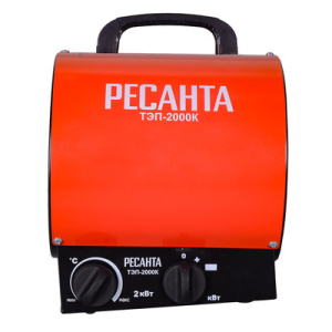 Тепловая электрическая пушка РЕСАНТА ТЭП-2000К предназначена для вентиляции и обогрева жилых и производственных помещений, складов, гаражей, а также для обогрева и сушки в строительстве. Прибор относится к тепловым пушкам круглого типа. Нагревательный элемент - трубчатый. Данная модель рассчитана на питание от электросети переменного тока частотой 50 Гц, номинальным напряжением 220-230В (однофазная). Устанавливается на полу. Обогреватель оснащен регулировкой режимов работы (мощности) - Режим 1 - 30 Вт (в этом режиме работает только вентилятор, функция обогрева отключена). Режим 2 - 2000 Вт.