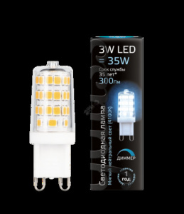 Лампа Gauss G9 AC185-265V 3W 300lm 4100K керамика диммируемая LED 1/10/200