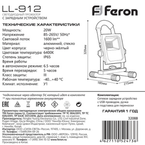 Переносные аккумуляторные прожекторы FERON LL-912, LL-913, LL-915 – отличное решение для любителей отдыха на природе. Также данные прожекторы отлично подходят для работы напроизводственных предприятиях, для освещения аварийных участков, во время проведения ремонтных работ. Преимущества - светодиоды имеют широкий угол обзора 120 градусов, обширная комплектация прожекторов, в которую входит сетевое зарядное устройство с USB-проводом (адаптер 5V/2A)- кронштейн-ручка и подставка для переноски с возможностью регулировки. Надежная и компактная конструкция прожекторов со степенью защиты IP65. Длительное время работы без подзарядки позволит вам взять прожектор, куда бы вы не отправились. Литиевые аккумуляторы повышенной емкости обеспечивают долгую работу до 10 часов (в зависимости от модели). С помощью USB-провода можно зарядить прожектор в машине, если поблизости нет электрической розетки.