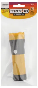 Трофи ТВ4L LED-фонарь c четырьмя яркими светодиодами. Корпус изготовлен из ударопрочного пластика. Фонарь выполнен в удачном сочетании контрастных цветов - черного и оранжевого. Компактный и простой в применении светодиодный фонарь станет отличным помощником в поездках, на рыбалке или охоте. Он также идеален для использования в быту, когда нужно что-то оперативно подсветить. Яркие оранжевые детали корпуса делают устройство заметным и дают позитивный настрой. В устройстве установлены современные светодиоды, которые не перегорают, не тускнеют со временем и не требуют замены. LED-элементы в количестве 4 штук обеспечивают очень яркий и при этом ровный свет. Дальность светового луча - 35 метров. Фонарь работает от 3 пальчиковых батареек (АА). Одного комплекта алкалиновых элементов питания хватает на 3 часа непрерывной работы.