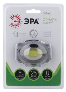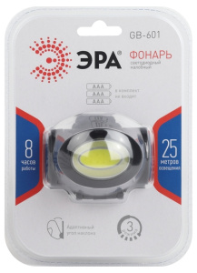 ЭРА GB-601 - светодиодный налобный фонарь с тремя режимами работы и адаптивным углом наклона. Работает от 3 мизинчиковых батареек (3 х ААА), одного комплекта элементов питания хватает на 8 часов непрерывного использования. Яркий ровный свет обеспечивается LED-платой со светодиодами премиум-класса, общая мощность которых составляет 5 Вт. Для комфорта пользователя предусмотрены 3 режима работы - максимальная яркость, 50% яркости, аварийное мигание. Мягкий брендированный ремешок не натирает кожу, при этом надежно фиксирует фонарь на голове.