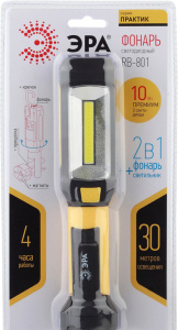 Фонарь RB-801 ЭРА Рабочий серия ""Практик"" [6Вт COB+4Вт, 3xAAA, магнит, крючок, прищепка, 720 гр, бл"
