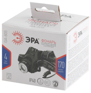ЭРА GA-805 налобный аккумуляторный фонарь с яркими экономичными светодиодами CREE мощностью 5 Вт. Фокус фонаря можно изменять, выбирая между дальним направленным лучом и ближним широким светом. В комплекте мягкий эластичный ремешок с брендированием и возможностью регулировки размера. Корпус фонаря изготовлен из ударопрочного пластика, устойчивого к механическим повреждениям, царапинам, сколам. Устройство прослужит долго и сохранит свой презентабельный вид. Фонарь выполнен в базовом черном цвете с матовым покрытием, линза обрамлена эффектным кольцом стального оттенка. ЭРА GA-805 компактен и удобен в использовании не требует батареек, подзаряжается от USB.