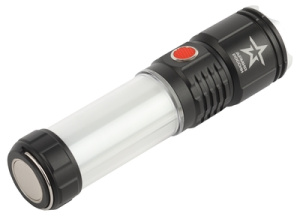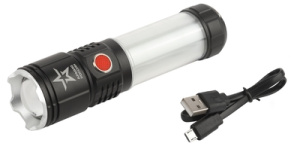 ЭРА Армия России ''Тайфун'' МА-703 - универсальный светодиодный аккумуляторный фонарь с лучом повышенной дальности, пятикратным зумом и встроенным светонакопителем. Фонарь оснащен емким литиевым аккумулятором (2100 мАч), одного заряда хватает на 15 часов непрерывной работы. Зарядное устройство в комплекте.Светодиодный луч повышенной дальности имеет возможность фокусировки. Пять режимов, удобных пользователю - от ближнего заливающего света (для того, чтобы хорошенько осмотреться в темноте) до длинного направленного луча (чтобы определиться с дальнейшим направлением пути).Ручка фонаря Армия России ''Тайфун'' светится белым и красным светом. Есть режим мерцания. Благодаря необычному фактурному дизайну корпуса и тщательной сборке его приятно держать в руках, а за счет продуманного функционала им приятно пользоваться. Фонарь украшает фирменная звезда Армии России