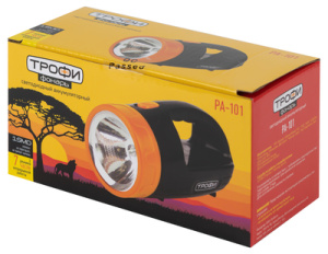 ТРОФИ РА-101 , светодиодный аккумуляторный фонарь-прожектор. Дальность светового луча 75 метров. Просто и быстро заряжается , в комплекте съемная вилка для прямого подключения к обычной сети 220 В. Одного полного заряда хватает на 7 часов непрерывной работы фонаря. Фонарь прожекторный ТРОФИ РА-101 имеет эргономичную ручку с углублениями , для комфортного расположения в руке и удобного переноса. Выпускается в красочной картонной коробке. Прекрасно подходит для подарка к любому празднику.