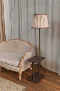 Торшер Ларсен венге стал хитом продаж по всей территории России. Это идеальный светильник для тех, кто любит классику в интерьере. Торшер устойчив и функционален. Он станет для Вас источником локального, мягкого освещения и столиком, на который удобно положить пульт, книгу или очки. ГАБАРИТЫ – 154*57*42 см, столик прямоугольный – 30*40 см. АБАЖУР – из ткани софт цвета капучино, декорирован тесьмой. СТОЛИК-ОСНОВАНИЕ – из качественной ЛДСП повышенной износо- и водостойкости. Цвет ЛДСП – венге, глубокий, насыщенный, благородный, темный. Это классическое интерьерное решение, которое сохраняет актуальность на протяжении многих лет. СТОЙКА из стали также окрашена в цвет венге.