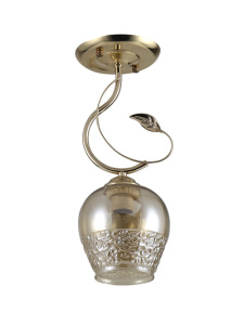 Rivoli Kimberly - элегантный светильник на потолок в виде цветка в золотистых оттенках. Дизайн данного потолочного светильника создан итальянским брендом Rivoli, хорошо известным в России за продукцию с оптимальным сочетанием цены и качества. Светильник Kimberly подходит на любой тип потолка, в том числе на натяжной потолок. Его элегантная арматура гальванизирована в золотой цвет, а плафоны имеют теплую перламутрово-золотистую тонировку. Корпус декорирован запоминающейся золотой веточкой с листочком. Стеклянный плафон в виде бутона украшен фигурным ободком с объёмным узорчатым рисунком. Этот светильник-люстра привнесет в ваш дом уют и красоту. Идеальным решением такой потолочный светильник станет для традиционных интерьеров, пространств в стиле модерн. Можно купить для комнат в восточном стиле. Источник света -Е27 60Вт.