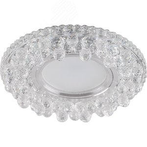 Светодиодный светильник разработан специально для натяжных потолков и подвесных систем. Применяется как для декоративной подсветки, так и для основного освещения помещений. Особенностью новых моделей светильников является подсветка кристаллов при помощи светодиодной ленты расположенной по периметру светильника, что обеспечивает возможность отдельного включения светодиодной подсветки или лампы (при подключении к разным выключателям).