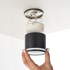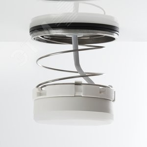 Патрон закреплен на пружинке, за счет чего обеспечивается плотное прилегание лампы к краю светильника. RAL9017