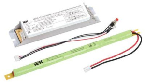 Блок аварийного питания IEK состоит из электронного пускорегулирующего аппарата (конвертера), герметичной никель-металл-гидридной аккумуляторной батареи, светодиодного индикатора наличия сети и подзарядки аккумулятора, кнопки "ТЕСТ".