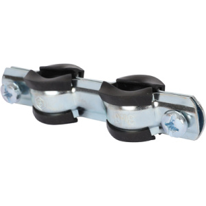 Трубный двойной хомут представляет собой спаренный сантехнический обрезиненный хомут с одной крепежной гайкой для крепления к стене. Применяется для разводки парных труб горячего и холодного водоснабжение в промышленном и гражданском строительстве