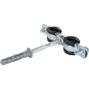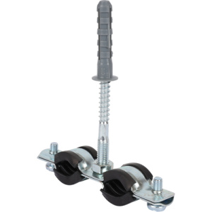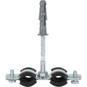 SAC-0020-200038 STOUT Двойной хомут для труб, комплект: хомут+шпилька шуруп +дюбель пластиковый 3/8'
