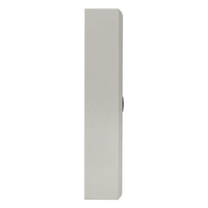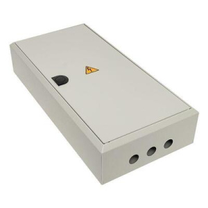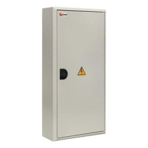 Навесной, с дверцей и замком. Изготовлен из металлического сплава, серого цвета. Размеры: 610 х 300 х 120 мм. Защищен от проникновения пыли и вертикальных капель (IP31).
