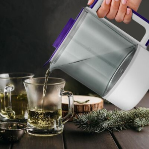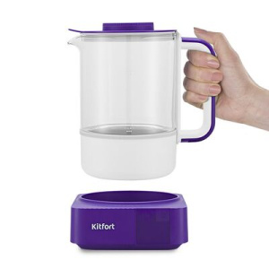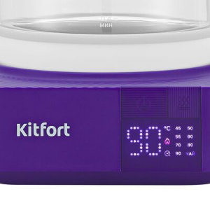 Электрический чайник с электронным терморегулятором Kitfort КТ-6191 может не только вскипятить воду, но и нагреть её до температур - 45, 50, 55, 60, 70, 80 и 90 С,/ Корпус чайника выполнен из стекла и нержавеющей стали, а крышка и подставка — из сочетания пластика и нержавеющей стали. Мерная шкала нанесена на стеклянную часть корпуса. Ручка чайника пластиковая, не нагревается и удобно лежит в руке. На подставке чайника расположена панель управления. На дисплее отображается температура воды и значок режима. Во время работы чайника дисплей показывает текущую температуру воды и выбранную температуру нагрева, что очень удобно. Чайник имеет функцию поддержание температуры в течение 24 часов. Полный чайник закипает примерно за десять минут. Прибор имеет защиту от перегрева и от включения без воды - при включении без воды чайник нагревается и отключается (срабатывает защита от перегрева).