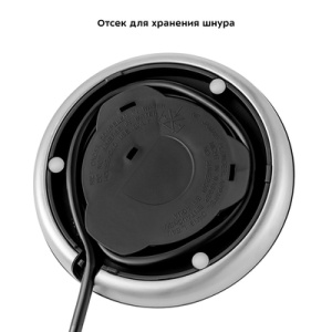 Электрический чайник Kitfort КТ-6193 предназначен для кипячения воды дома, в офисе, на даче. За один раз в чайнике можно вскипятить 1,7 л воды. Чайник КТ-6193 имеет съёмную крышку и большое горлышко, что облегчает доступ внутрь чайника при его чистке и во время удаления накипи. В носике чайника расположен фильтр от накипи. Кнопка включения находится под ручкой. При включении чайника загорается подсветка, которая является индикатором работы. Конструкция чайника не позволяет ручке нагреваться, поэтому браться за нее абсолютно безопасно. Снизу имеется отсек для хранения шнура, в который можно смотать излишки шнура электропитания, чтобы он не мешал на столе. Нагревательный элемент (ТЭН) у этой модели чайника скрытый и находится в донной части. Сверху он закрыт металлической пластиной из нержавеющей стали.