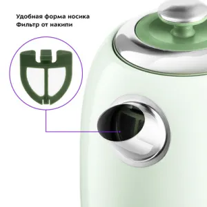 Чайник Kitfort КТ-6604 имеет стильный и винтажный дизайн. Корпус и крышка прибора выполнены из нержавеющей стали. Ручка пластиковая, не нагревается и удобно лежит в руке. За один раз в чайнике можно вскипятить до 1,7 л воды. Этого хватит, чтобы приготовить горячие напитки на большую семью! Мерная шкала позволяет легко следить за уровнем воды. В кнопку включения/выключения встроен индикатор нагрева. Специальная форма носика позволяет точно наливать воду в чашку без расплёскивания и брызг и быстро наполнять её. Встроенный фильтр в носике не даст накипи попасть в напиток из чайника. Крышка чайника полностью съёмная, что облегчает доступ внутрь чайника. Нагревательный элемент (ТЭН) в донной части закрыт пластиной из нержавеющей стали. Это препятствует образованию накипи, облегчает уход и значительно снижает шум при нагревании воды.