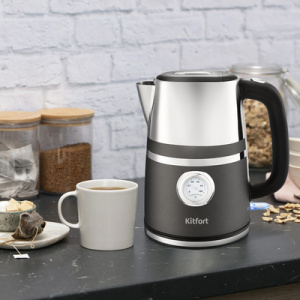 Любимые горячие напитки всегда на вашем столе! Мощный и вместительный чайник Kitfort КТ-670 подойдёт для особых встреч с семьёй и друзьями. Надёжный и удобный. Корпус чайника и подставка выполнены из сочетания металла и пластика. Мерная шкала находится на корпусе сбоку у ручки. Винтажный термометр. Благодаря термометру вы сможете правильно заварить напитки, для которых требуется определённая температура воды. Комфорт во всём! Широкий носик позволяет точно наливать воду в чашку и быстро наполнять чайник.