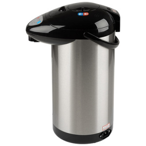 Термопот Energy TP-603 с мощностью 750 Вт совмещает функции чайника и термоса. Он способен кипятить воду и поддерживать ее высокую температуру на заданном уровне длительное время. Объем резервуара для воды равен 3.8 л. Вода подается при помощи ручной помпы или электронасоса. Термопот в металлическом корпусе поддерживает три режима работы - кипячение, повторное кипячение и поддержание температуры.