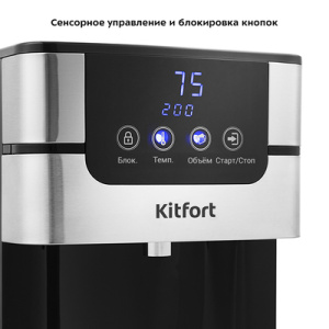 Мгновенный нагрев. Термопот Kitfort KT-2501 служит для моментальной подачи воды заданной температуры без предварительного подогрева и ожидания. Подогрев осуществляется проточно, подача воды начинается в течение примерно 5 секунд после нажатия кнопки. Не потребляет электричество в режиме простоя. Термопот не нагревает лишний объём воды, в результате чего значительно экономится электроэнергия. Экономия по сравнению с обычными чайниками до 50%. Сенсорное управление. При помощи сенсорной панели вы сможете выбрать нужную температуру, объём порции (100-300 мл или неограниченно), а также включить функцию блокировки, что предотвратит нежелательное включение. Особенно важно, если в доме есть дети. Удобство во всём! Индикатор уровня воды на задней части прибора даёт возможность пользователю постоянно контролировать её объём.