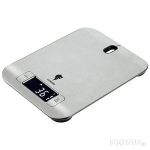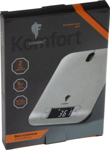 Кухонные электронные весы Leonord - незаменимый помощник современной хозяйки. Предназначены для взвешивания продуктов питания. Весы оборудованы металлической поверхностью (18х13,7см) и LCD дисплеем с подсветкой. Весы помогут вам убедиться, что ваши ингредиенты для блюда добавлены в нужном количестве. Прорезиненные ножки спасут поверхность вашей столешницы от царапин. Максимальная нагрузка — 5 кг.