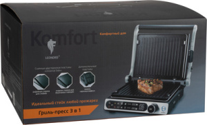 Гриль-пресс Leonord le-1723 3 в 1 предназначен для приготовления еды. Благодаря равномерному распределению температуры еда хорошо прогревается, что ускоряет готовку. Прост в использовании, поэтому не требует специальных навыков. За счет высокой прочности прослужит долго.