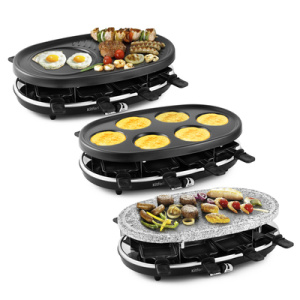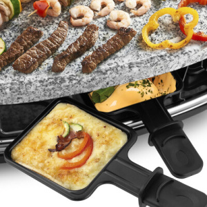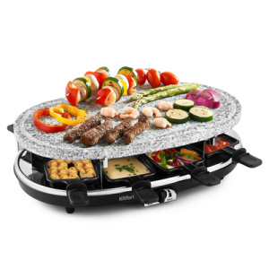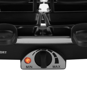 Раклетница Kitfort КТ-1651 - это устройство для приготовления разнообразных закусок, а также она может объединить вокруг себя тёплую компанию друзей. Приглашайте гостей и родственников, и устраивайте раклет-вечеринку. Пока на сковородках плавится сыр, ваши гости сами приготовят себе начинку по своему вкусу - обжарят кусочки картофеля или перца, приготовят стейк или колбаски. Устройство оснащено ТЭНом, под которым имеются специальные углубления для порционных сковородок для сыра. Сверху ТЭН закрывает панель, на которой можно обжаривать продукты. ТЭН раклетницы нагревает панель для гриля и расплавляет сыр в сковородках. На верхний ярус устанавливается одна из панелей по вашему желанию - каменная плита, гриль + блинница, панель для блинчиков. Вы можете плавно менять температуру при помощи регулятора на корпусе прибора. Около регулятора расположен индикатор нагрева.