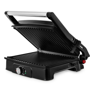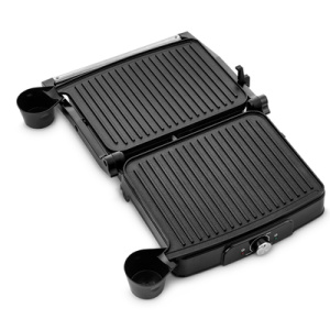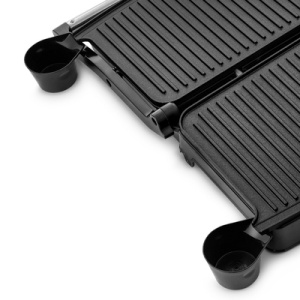 Электрогриль КТ-1655 предназначен для приготовления мяса, рыбы, овощей, сосисок, бутербродов, сэндвичей, гренок, тостов! Быстрый нагрев. Панели изготовлены из алюминия с нанесённым антипригарным покрытием. В одностороннем режиме крышка гриля откидывается на 180 , благодаря чему гриль превращается в большую жаровню, а продукты можно выложить сразу на две панели. Для раскладывания гриля предусмотрена специальная кнопка на боковой части корпуса. Для сбора жира, сока и лишнего маринада предназначены специальные бороздки на нижней и верхней панелях гриля – во время приготовления жир скапливается в них, а затем стекает в съёмные ёмкости для жидкости. На нижней задней части гриля расположены раскладывающиеся ножки. Это полезно при готовке в двустороннем режиме – из-за наклона жир и прочие жидкости, образующиеся в процессе приготовления, будут легче стекать в ёмкость для жидкости.