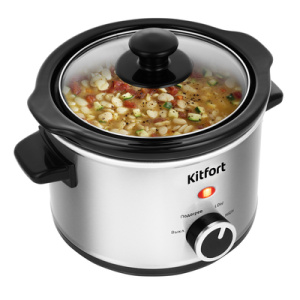 Медленноварка Kitfort КТ-205 готовит блюда особым способом – томлением. Температура лежит в диапазоне 60-120 C. Этот способ идеален для блюд длительного приготовления, как каши, рагу, жаркое, варенье, плов, выпечка, топлёное и сгущённое молоко и др. Благодаря особому температурному режиму вода во время приготовления почти не испаряется, а продукты медленно тушатся в собственном соку, сохраняя практически все витамины и полезные микроэлементы. В процессе приготовления блюда не нужно подходить, перемешивать или переворачивать еду. Можно спокойно заниматься своими делами, лечь спать или уйти на работу, чтобы к вашему приходу ужин был уже готов! Ёмкость кастрюли - 1,5 л. Медленноварка не займёт много места на вашей кухне. Однако её объёма хватит, чтобы приготовить ужин на всю семью. Удобный и простой переключатель режимов. На корпусе установлены термостойкие ручки.