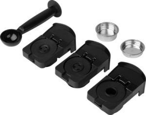 Кофеварка 3 в 1. Благодаря 3 адаптерам, которые входят в комплект, кофеварка подходит для капсул типа Nespresso и Dolce Gusto, а также для молотого кофе. Она прекрасно совмещает в себе все преимущества каждого типа кофеварок и готовит под давлением 19 бар. Кофеварка для капсул 2 типов. Капсульные кофеварки позволяют сделать процесс приготовления быстрым и удобным. Необходимо просто поместить капсулу в адаптер, а адаптер — в кофеварку. В комплекте идут 2 адаптера для капсул типа Nespresso и Dolce Gusto. Экспериментируйте со вкусами! Адаптер для молотого кофе. Рожковая кофеварка — отличный выбор для гурманов, желающих ежедневно наслаждаться полным букетом вкуса свежего кофе. Особая технология приготовления позволяет сохранить большое количество полезных веществ и тонкий аромат напитка.