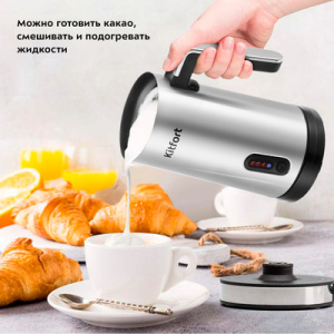 Капучинатор КТ-7129 создан для приготовления молочной пенки для напитков на базе эспрессо - капучино, латте и латте макиато. Прибор работает в четырёх режимах - плотная или воздушная пенка с нагревом, смешивание с нагревом и вспенивание без. Капучинатор — идеальный выбор для тех, кому не хочется осваивать процесс самостоятельного вспенивания молока, следить за температурой. Через прозрачную крышку можно наблюдать за приготовлением. Насадка с пружинкой или без позволит смешать или взбить напиток. А подставка с центральным контактом даёт возможность располагать на ней корпус в любом положении, обеспечивая вращение на 360 Управление капучинатором осуществляется с помощью одной кнопки. Устройство автоматически отключается, когда процесс вспенивания или смешивания выполнен. Стенки капучинатора не будут горячими после окончания работы из-за особенности конструкции.