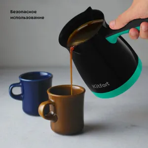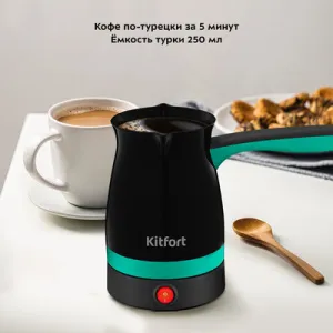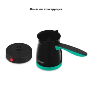 Электрическая турка КТ-7183 варит кофе по-турецки. С ней вы сможете быстро и легко сварить натуральный кофе на 4 чашки по 60 мл. Устройство состоит из базы и турки. Ёмкость турки 250 мл. Переключатель на базе включает и выключает электрическую турку. Турка не отключается автоматически. Электрическая турка состоит из базы и турки. На базе и на дне турки находятся электрические контакты. Турка устанавливается на базу наподобие электрического чайника. Ручка турки пластиковая, не нагревается и удобно лежит в руке. У турки КТ-7183 2 носика. Это сделано специально, чтобы вам было удобно наливать кофе, вне зависимости правша вы или левша. Дно турки изготовлено из высококачественной нержавеющей стали, так что за прибором легко ухаживать. Наслаждайтесь любимым напитком каждый день!