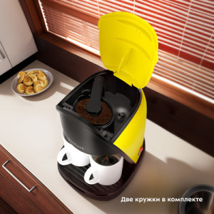 Приготовлю кофе дома и на работе! Кофеварка КТ-7188 предназначена для приготовления кофе в домашних условиях или в офисе. Простая в управлении! Капельная кофеварка КТ-7188 готовит ароматный чёрный кофе из молотого кофе одним нажатием кнопки. Две кружки в комплекте. В капельной кофеварке горячая вода медленно поступает в фильтр с молотым кофе. Пройдя через него, она попадает в кружки. Две керамические кружки идут в комплекте. Многоразовый фильтр для двух порций кофе. Многоразовым нейлоновым фильтром можно пользоваться неограниченное количество раз. Фильтр вмещает 15 грамм молотого кофе, а ёмкость резервуара для воды составляет 300 мл. Кофеварка предназначена для приготовления двух порций кофе одновременно. Лёгкая и компактная! Кофеварка лёгкая и занимает мало места, что очень удобно в квартирах с маленькими кухнями.