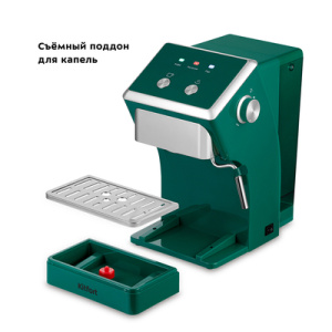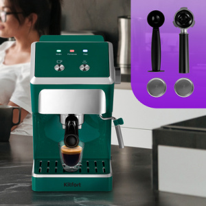 Рожковая кофеварка КТ-7283 поможет приготовить кофе эспрессо, капучино или латте, а также множество других видов кофе на ваш вкус. Ложка-темпер поможет отмерить нужное количество молотого кофе и утрамбовать кофейную таблетку в фильтре. Металлический рожок хорошо прогревает напиток, сам напиток получается насыщенным, густым и с хорошей пенкой. Для приготовления пара и горячей воды в кофеварке есть паровая трубка — стимер. Стимер погружают в холодное молоко, включают подачу пара и взбивают молочную пенку. Резервуар для воды съёмный — его можно легко снять и наполнить водой в любом удобном месте. Чтобы снять резервуар с кофеварки, поднимите его вверх. В кофеварке КТ-7283 в поддоне установлен специальный поплавок. Если поддон заполнился водой, то поплавок всплывет выше решётки. В таком случае следует снять поддон и решётку и слить воду из поддона.
