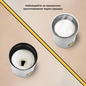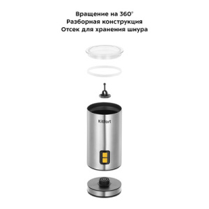 Капучинатор КТ-7291 — устройство для приготовления молочной пенки, используемой для напитков на базе эспрессо. Прибор работает в четырёх режимах - плотная и воздушная молочная пенка с нагревом, смешивание с нагревом и вспенивание без нагрева. Управление осуществляется с помощью одной кнопки на корпусе. Капучинатор автоматически отключается, когда процесс взбивания или смешивания выполнен. Капучинатор — идеальный выбор для тех, кому не хочется осваивать процесс самостоятельного взбивания молока. Достаточно наполнить капучинатор нужным количеством молока и выбрать режим. Через прозрачную крышку можно наблюдать за приготовлением. Подставка с центральным контактом даёт возможность располагать КТ-7291 в любом положении, обеспечивая вращение на 360 Капучинатор полностью разбирается, что облегчает его очистку, а отсек для хранения шнура снизу освободит место на кухне от излишек.