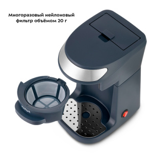 Капельная кофеварка готовит ароматный черный кофе из молотого кофе одним нажатием кнопки. В кофеварке горячая вода медленно поступает в фильтр с молотым кофе. Пройдя через фильтр, вода попадает в кружку. Многоразовым фильтром можно пользоваться неограниченное количество раз. Сетка фильтра изготовлена из нейлона. Фильтр вмещает до 20 г молотого кофе, а резервуар для воды имеет емкость 360 мл. Кофеварка КТ-7312 обладает не только большим функционалом, но и компактным размером и украсит любую кухню! В комплекте идёт керамическая кружка, из которой будет вкусно пить кофе каждое утро. Кофеварка КТ-7312 удобно разбирается для быстрого ухода – так прибор легко поддерживать в чистоте. Фильтр и воронку важно очищать после каждого использования.